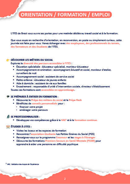 Rendez-vous le samedi 22 novembre 2025 de 9h à 13h, à l'ITES de Brest, pour poser toutes vos questions sur le monde du travail social, orienter vos projets et construire votre avenir professionnel. Entrée libre et sans inscription